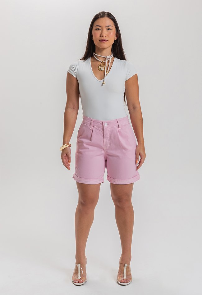 A bermuda feminina Fofolete branca combina conforto e estilo em uma peça leve e versátil para o dia a dia. Com modelagem soltinha e cintura alta, oferece um caimento moderno que valoriza a silhueta sem perder a praticidade. O tom branco traz frescor às produções, sendo perfeito para compor looks casuais, despojados ou mais arrumados nas estações quentes.
