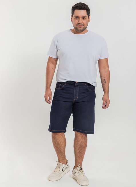 Bermuda Masculina Comum Plus Size Denim Escuro