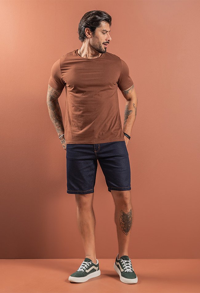 Bermuda masculina jeans com caimento confortável, ideal para o dia a dia. Estilo casual e moderno, perfeita para compor looks versáteis.