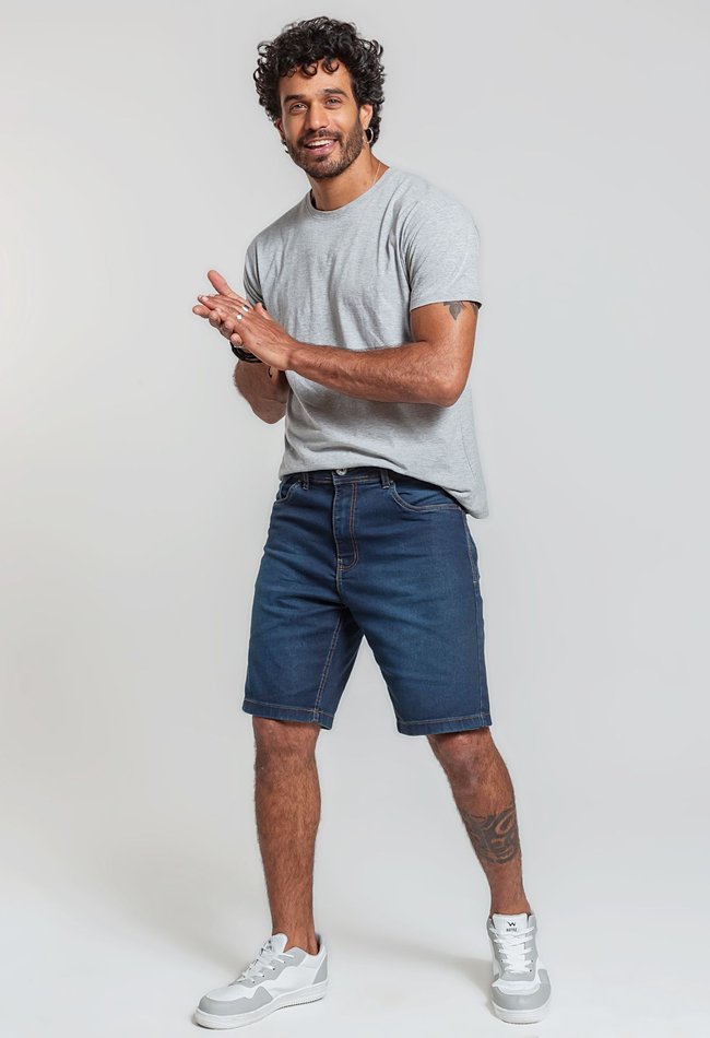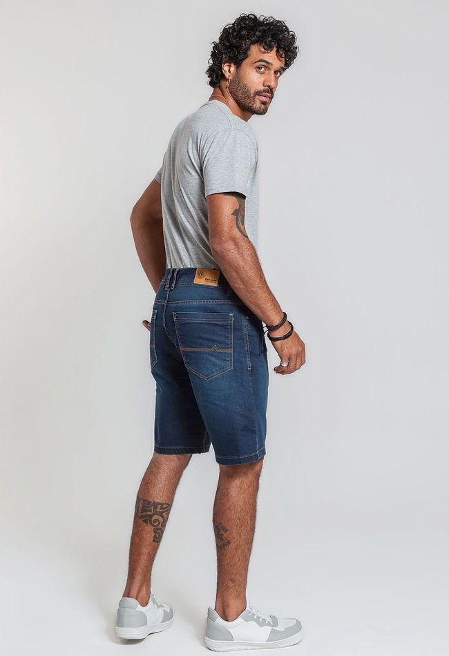 A Bermuda Masculina em Denim Escuro é a opção ideal para quem busca estilo e praticidade em uma peça única!