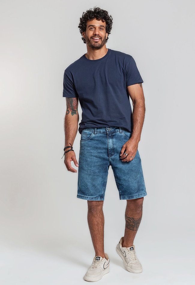 A Bermuda Masculina em Denim Médio é a escolha perfeita para quem busca praticidade e estilo no dia a dia!