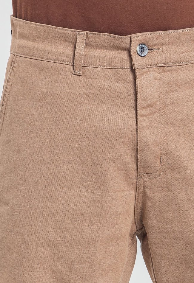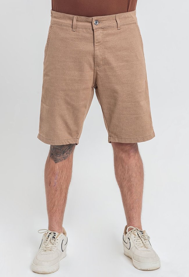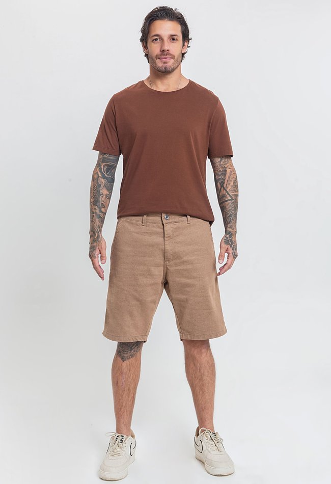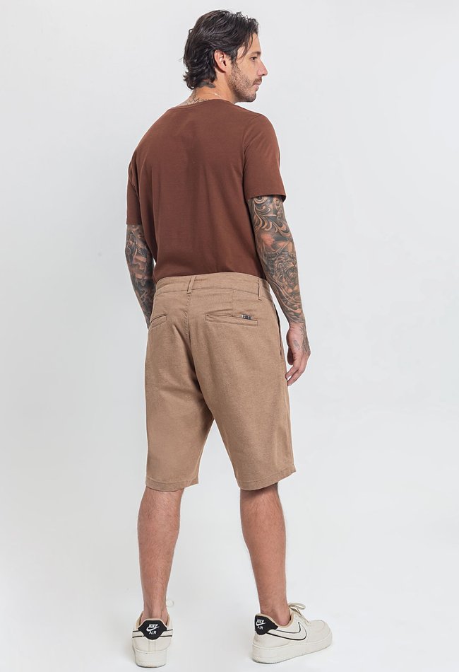 Bermuda masculina sport fino na cor camelo, com bolso faca lateral que une elegância e funcionalidade. Estilo sofisticado, caimento ajustado e conforto para o dia a dia.