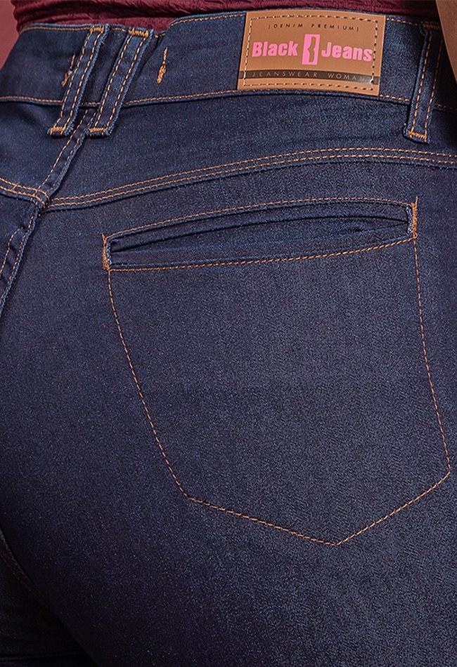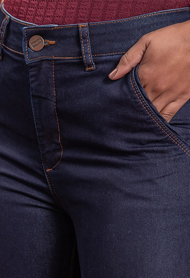 Calça Feminina Bootcut Com Bolso Faca Denim Escuro