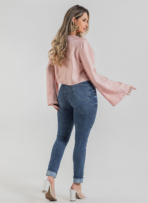 Calça Feminina Cigarrete C/ Barra Dobrada Denim Médio
