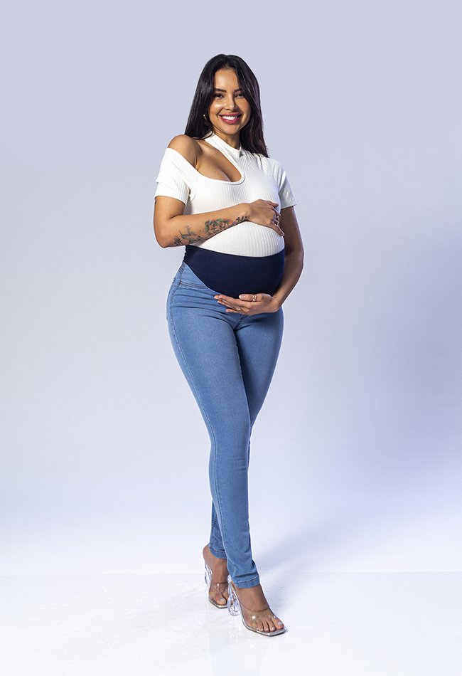 Calça feminina cigarrete gestante com elástico no cós, oferecendo conforto e ajustabilidade durante toda a gravidez. Com modelagem moderna e prática, garante liberdade de movimento e se adapta perfeitamente ao corpo, proporcionando estilo e conforto no dia a dia.