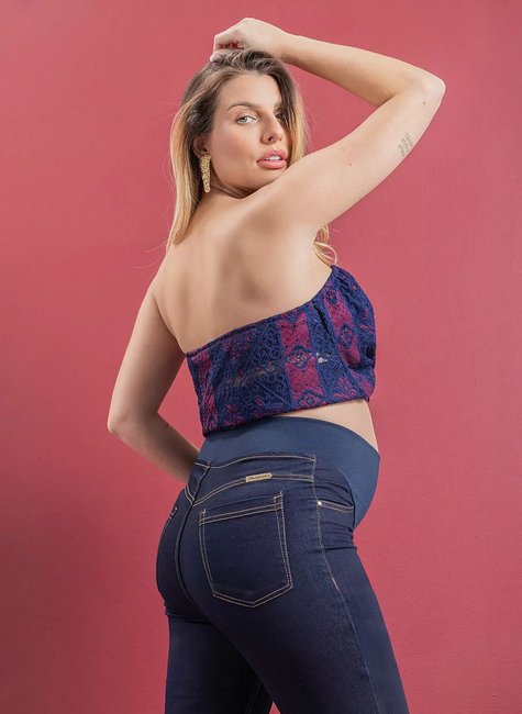 Conforto e estilo para a sua gestação! A Calça Cigarrete Gestante em denim escuro valoriza a silhueta com muito conforto, cós anatômico que se adapta ao crescimento da barriga. Ideal para o dia a dia com um toque moderno.