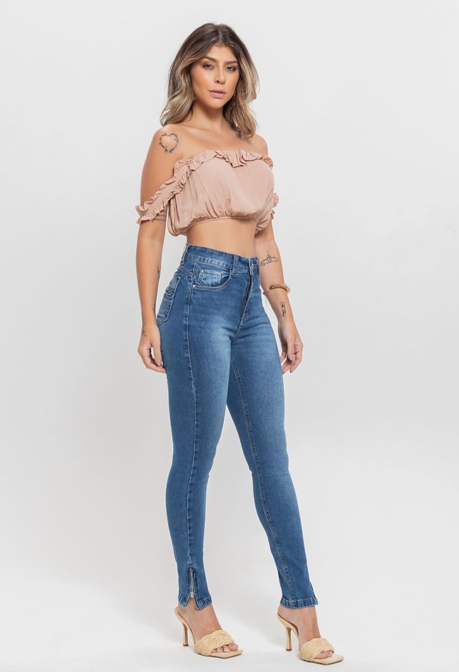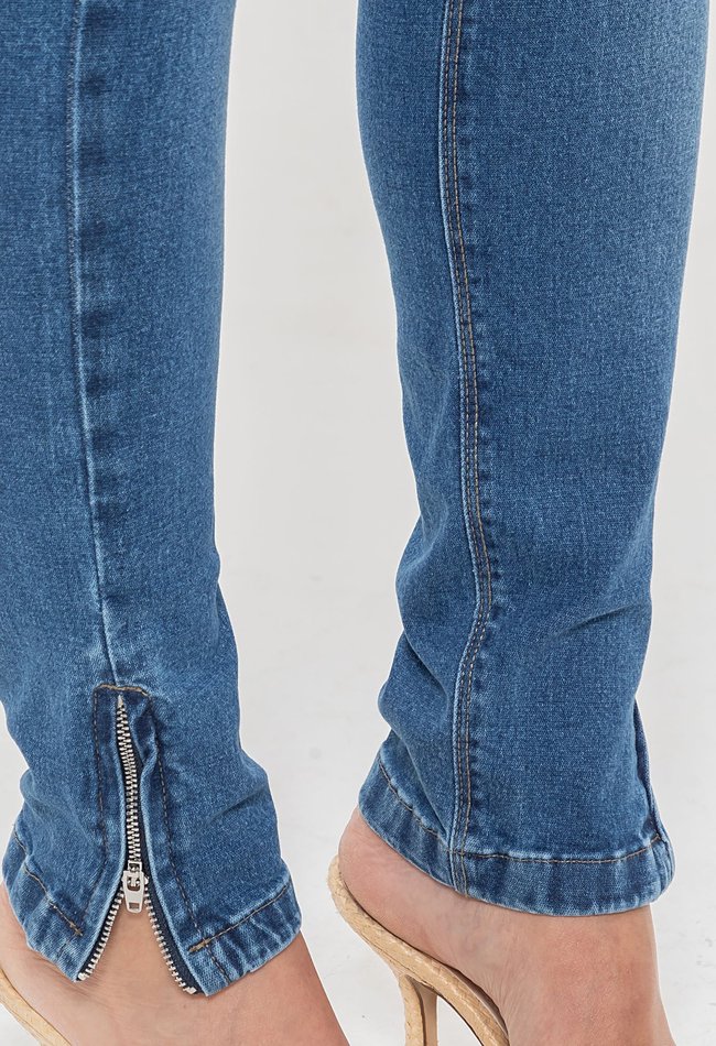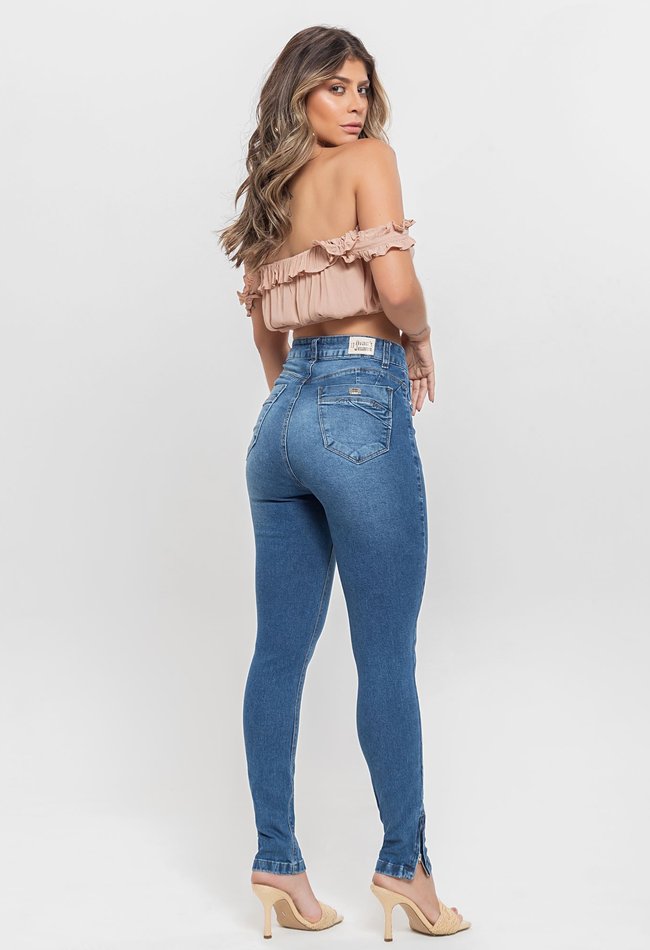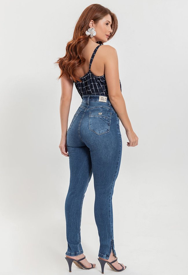 Calça Jeans Feminina Cigarrete Super Power com Zíper na Barra – Denim Escuro