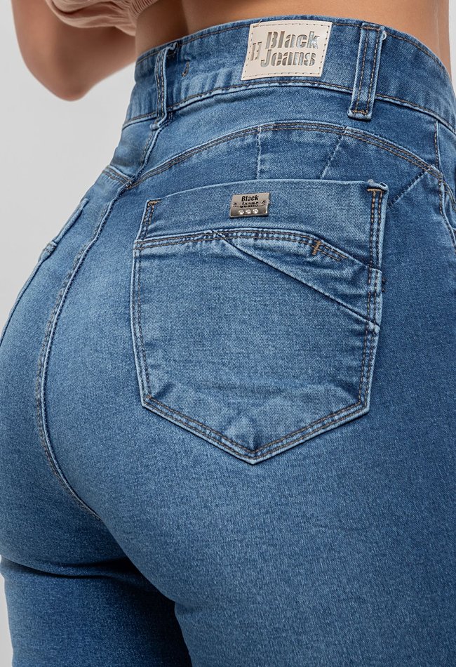 O denim escuro traz um toque sofisticado e fácil de combinar – ideal para quem busca um visual moderno tanto para o dia a dia quanto para ocasiões mais elegantes. O zíper na barra adiciona um detalhe fashionista, que permite variações no look e garante um charme extra.