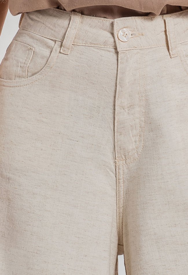 Em tom natural, neutro e atemporal, combina facilmente com blusas ajustadas, camisas, croppeds ou blazers, sendo perfeita para looks casuais, urbanos ou produções mais elegantes.