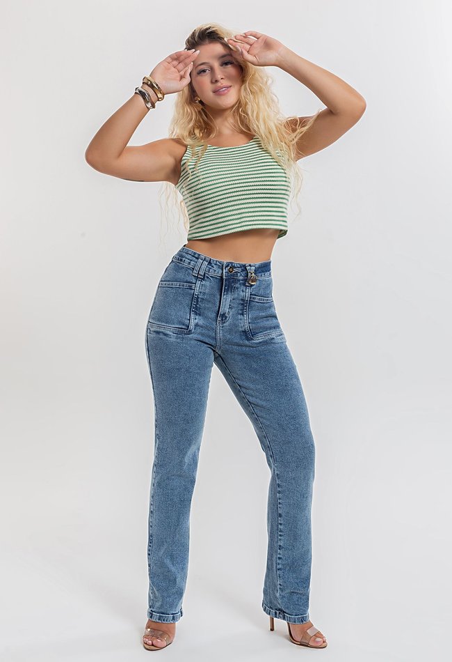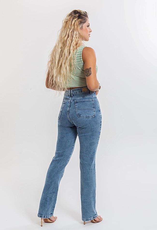 Calça Feminina Reta Denim Claro