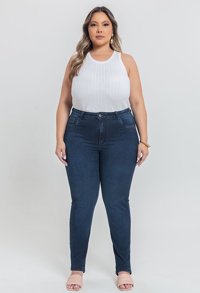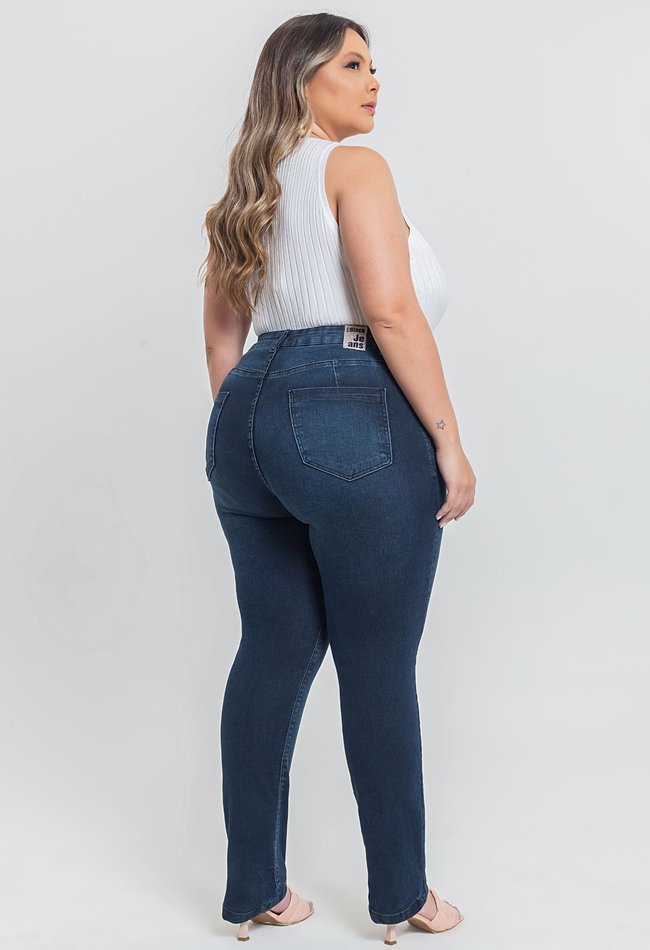 A Calça Jeans Feminina Reta Plus Size em denim escuro é um clássico indispensável no guarda-roupa. Com caimento reto dos quadris até a barra, oferece conforto e elegância na medida certa. A modelagem plus size valoriza a silhueta sem marcar, e o tecido com elastano garante mobilidade para o dia a dia. O tom escuro do jeans é versátil e ideal para compor looks que vão do casual ao mais sofisticado.