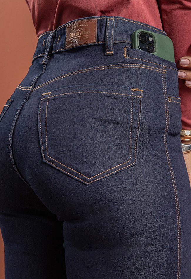 Calça Feminina Skinny Com Bolso Celular Denim Escuro