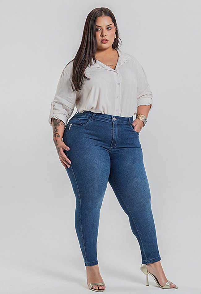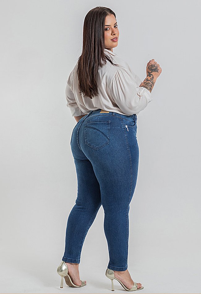 A Calça Feminina Skinny Plus Size em Denim Escuro é perfeita para quem busca um visual moderno, com caimento ajustado e conforto ao vestir. Sua modelagem skinny acompanha as curvas do corpo com elegância, enquanto a cintura alta valoriza a silhueta e proporciona mais segurança durante o uso.