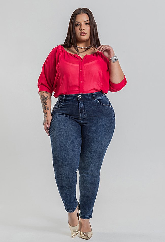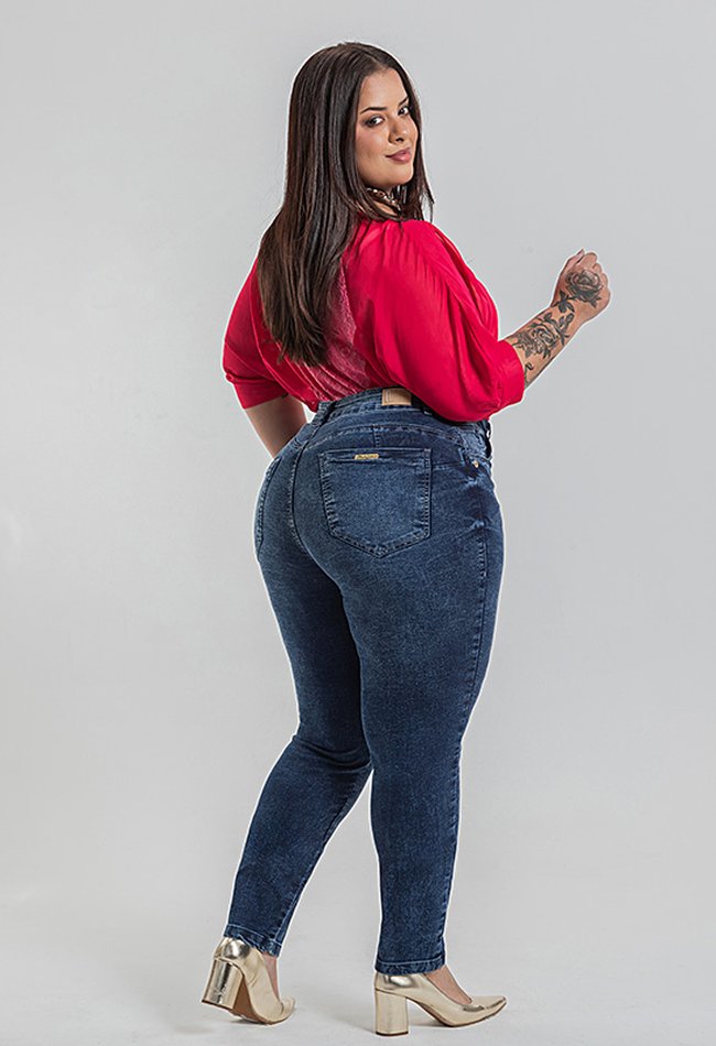 A Calça Feminina Skinny Plus Size em Denim Escuro é ideal para quem busca uma peça versátil, confortável e que valoriza as curvas. Com modelagem skinny, ela se ajusta ao corpo do quadril até a barra, criando um visual moderno e elegante.