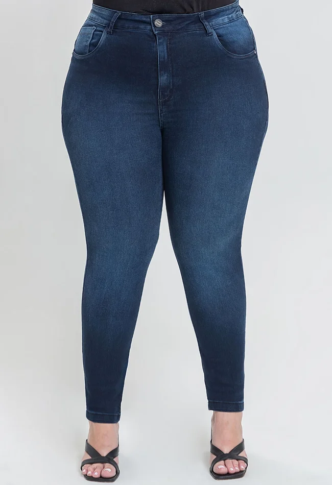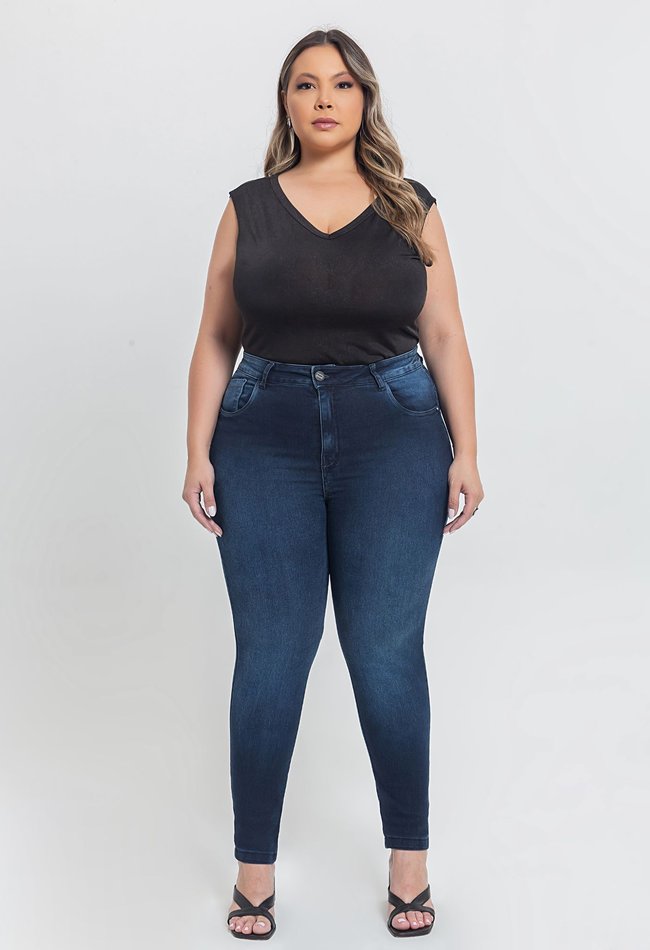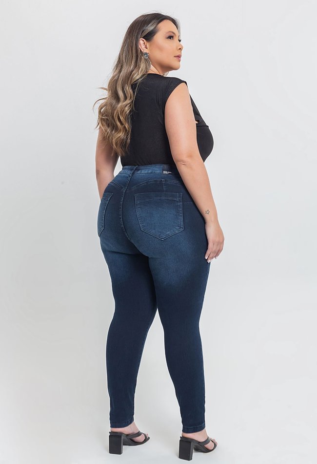 A Calça Jeans Feminina Skinny Plus Size em denim escuro une elegância e conforto em uma peça versátil para o dia a dia. Com modelagem ajustada ao corpo, valoriza a silhueta sem abrir mão da mobilidade, graças ao tecido com elastano. Ideal para compor desde looks casuais até produções mais sofisticadas. Um item essencial no guarda-roupa feminino plus size.