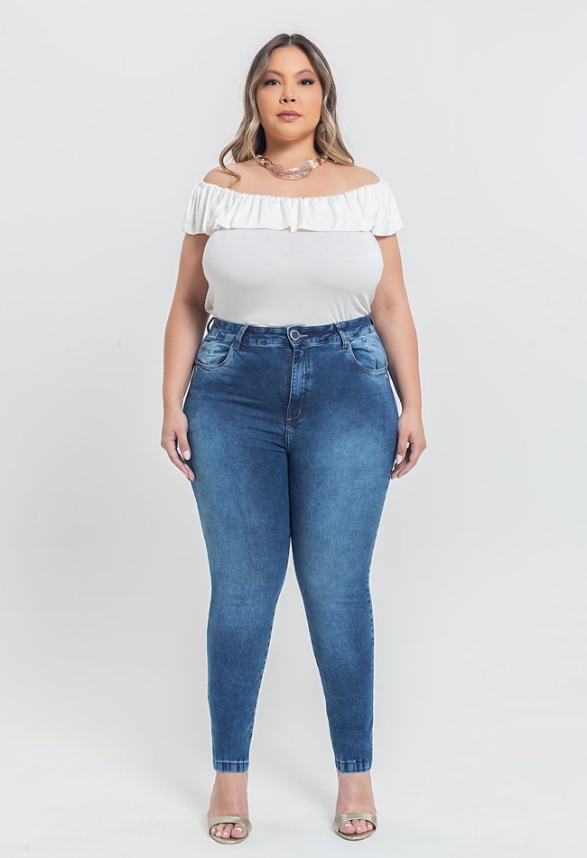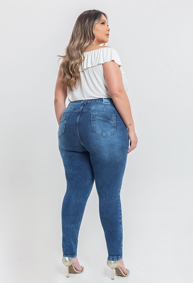Calça Feminina Skinny Plus Size Denim Médio