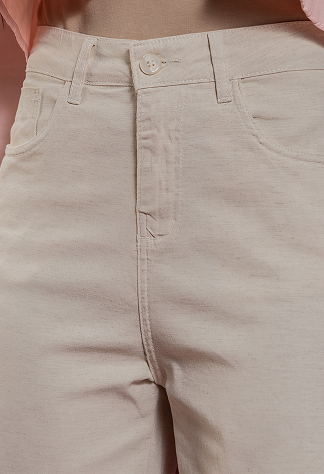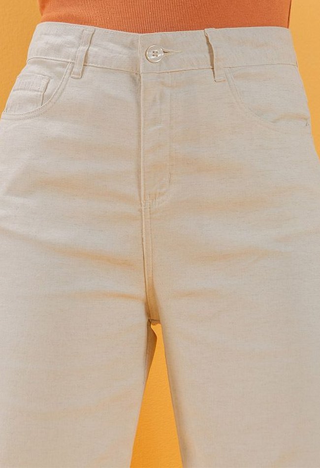 - 65% algodão 23% viscose 10% linho 2% elastano