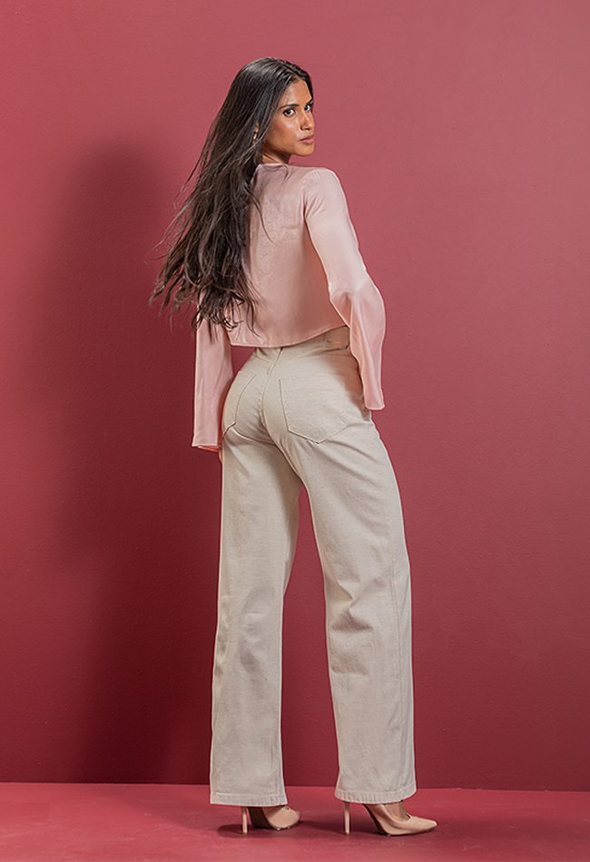 A calça jeans wide leg pantalona é uma peça de corte largo, com pernas soltas e fluídas, que se estendem desde a cintura até a barra, criando um efeito de "saia" ao caminhar. Inspirada nas calças pantalonas, ela combina o estilo amplo e confortável com o tecido jeans, proporcionando um visual moderno e elegante. Ideal para looks casuais ou mais sofisticados, essa calça oferece liberdade de movimento e é tendência tanto para o dia a dia quanto para ocasiões especiais.