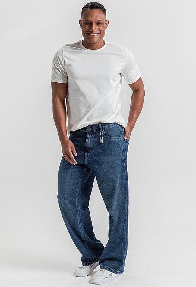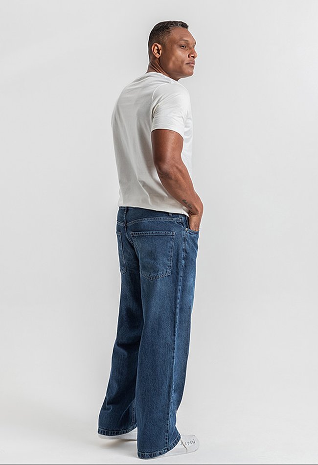 A Calça Masculina Baggy Denim Escuro traz o equilíbrio perfeito entre conforto, estilo urbano e atitude. Com modelagem baggy, ela possui um caimento mais solto ao longo das pernas, garantindo liberdade de movimento e um visual despojado, ideal para composições no estilo streetwear.O tecido em denim escuro oferece um toque moderno e versátil, fácil de combinar com camisetas oversized, jaquetas, tênis e acessórios casuais. É a peça ideal para quem busca um look autêntico, confortável e cheio de personalidade.