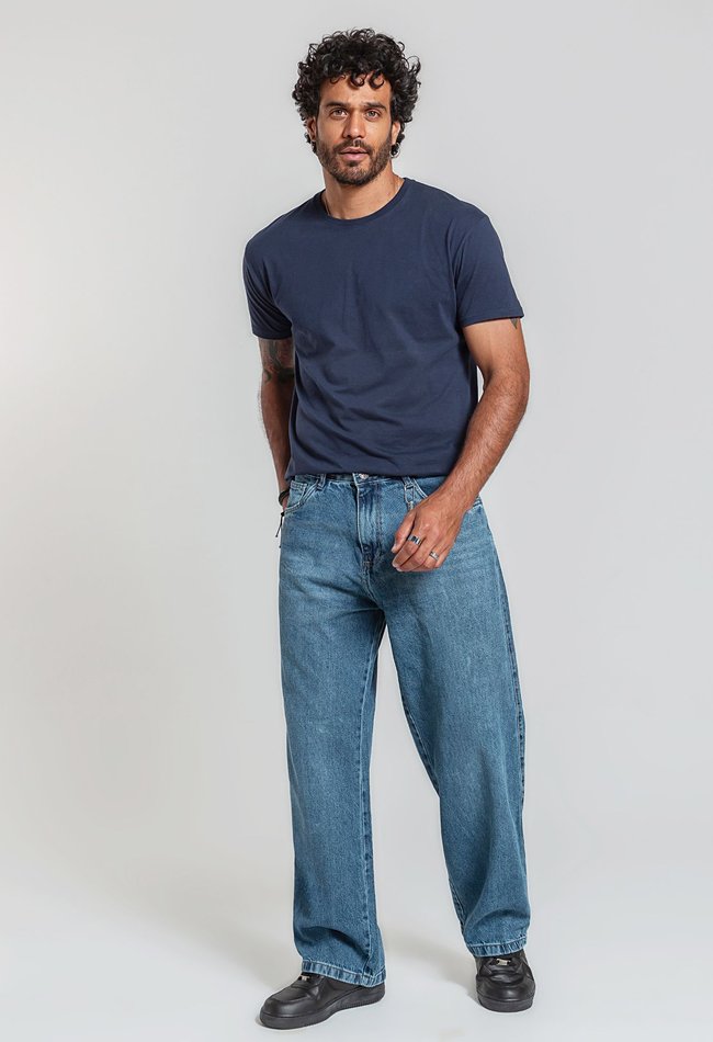 Com modelagem ampla, ela oferece máxima liberdade de movimento e um estilo despojado que é tendência entre os looks masculinos mais atuais.