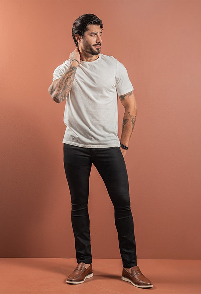 A Calça Masculina Skinny Black é a peça essencial para quem busca um visual contemporâneo e ajustado. Seu corte skinny proporciona um ajuste perfeito, valorizando a silhueta masculina com estilo e conforto. A cor preta é super versátil, podendo ser combinada facilmente com diversas opções de roupas para criar looks desde os mais casuais até os mais formais. Feita com tecido de alta qualidade, essa calça oferece durabilidade e conforto, sendo ideal para homens que apreciam praticidade e um toque de elegância no seu dia a dia.