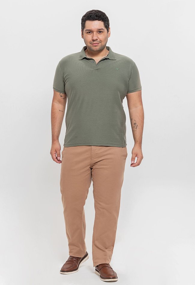 A Calça Masculina Sport Fino Plus Size na cor camelo combina elegância casual com conforto para o dia a dia. Desenvolvida com modelagem tradicional, ela oferece ótimo caimento para o público plus size, valorizando o corpo sem apertar. O tecido leve com toque macio e elastano garante liberdade de movimentos, tornando essa peça ideal tanto para ocasiões mais descontraídas quanto para um visual alinhado no trabalho ou eventos informais.