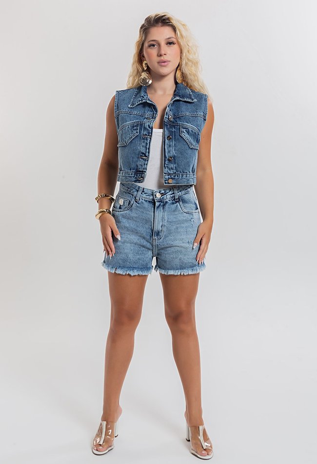 Colete Feminino Denim Médio