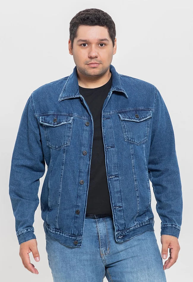 A jaqueta jeans masculina plus size combina estilo e conforto, com um corte moderno e ajuste perfeito para homens que buscam praticidade e elegância. Ideal para compor looks casuais e descomplicados, ela oferece liberdade de movimento e um visual despojado, sem abrir mão do conforto. Perfeita para qualquer estação!
