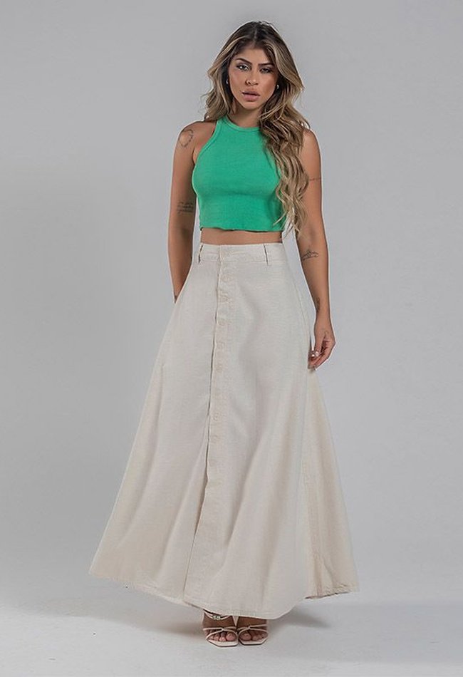 A saia feminina longa é uma peça que se estende até os tornozelos, proporcionando um visual elegante e fluido. Pode ser feita de diversos materiais, como algodão, chiffon, linho ou seda, e apresentar diferentes estilos, como evasê, reta ou plissada. A saia longa é ideal para ocasiões mais formais, como eventos ou jantares, mas também pode ser usada em looks casuais, combinando com blusas, camisetas ou regatas. Versátil e confortável, ela é uma peça-chave no guarda-roupa feminino, especialmente durante as estações mais quentes.