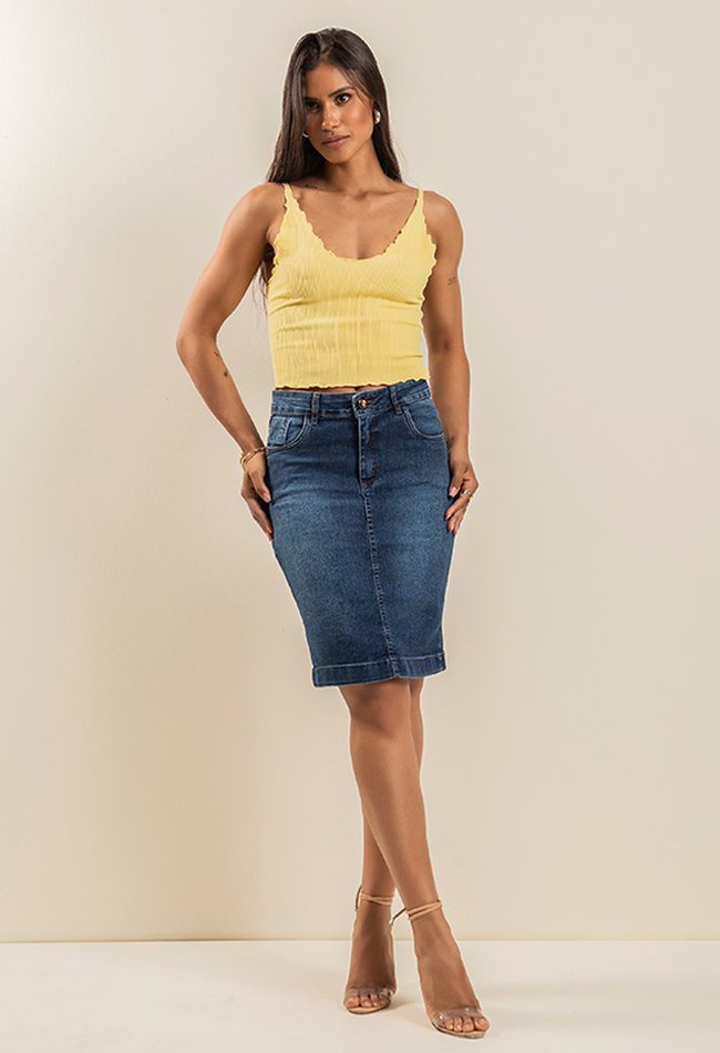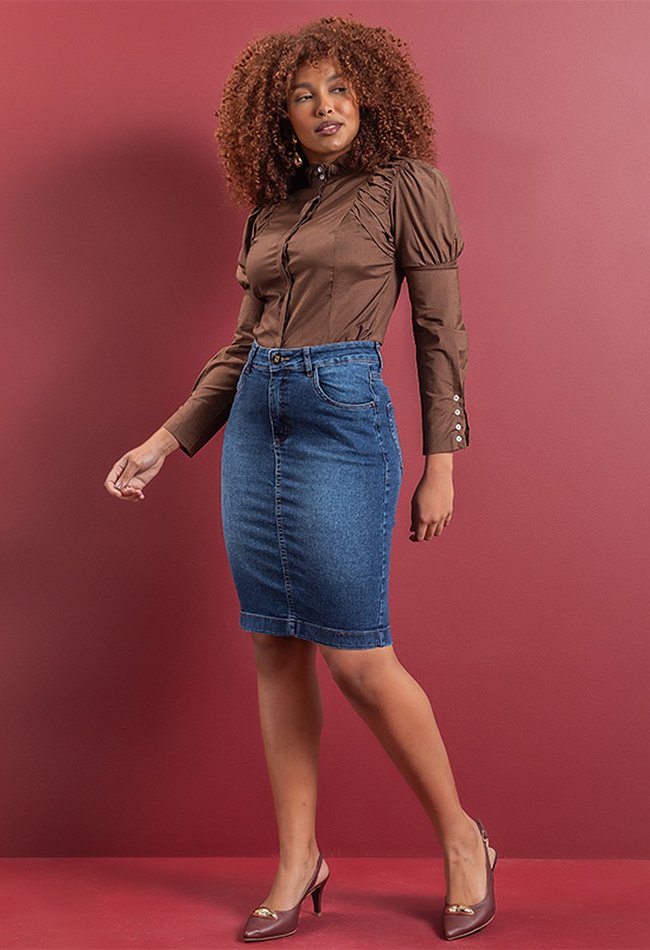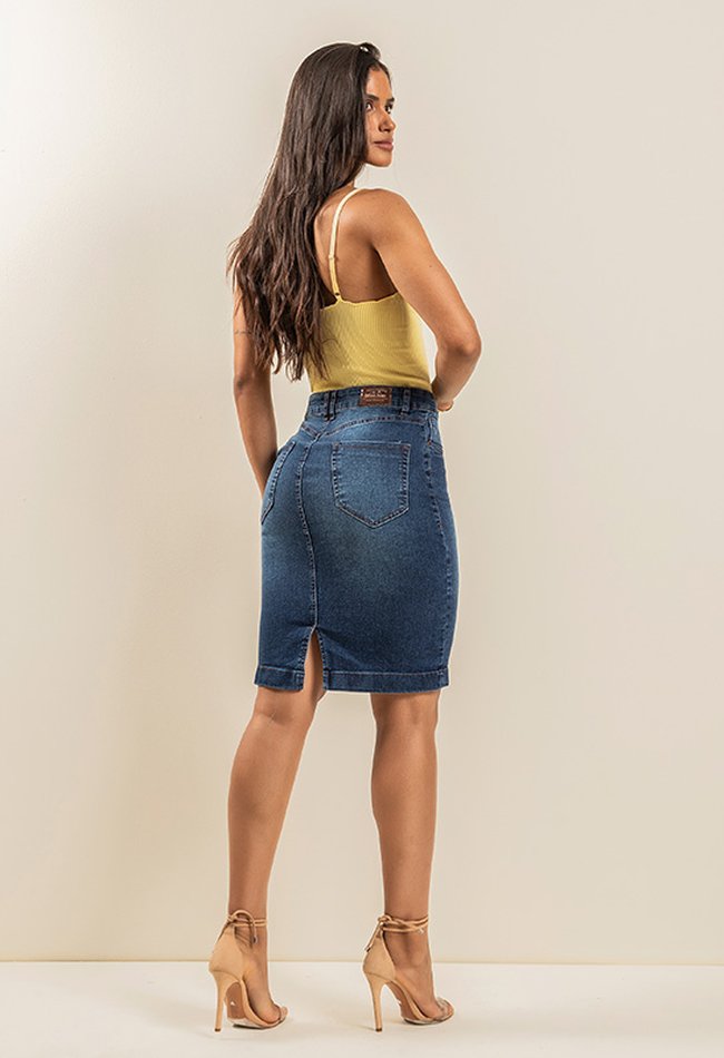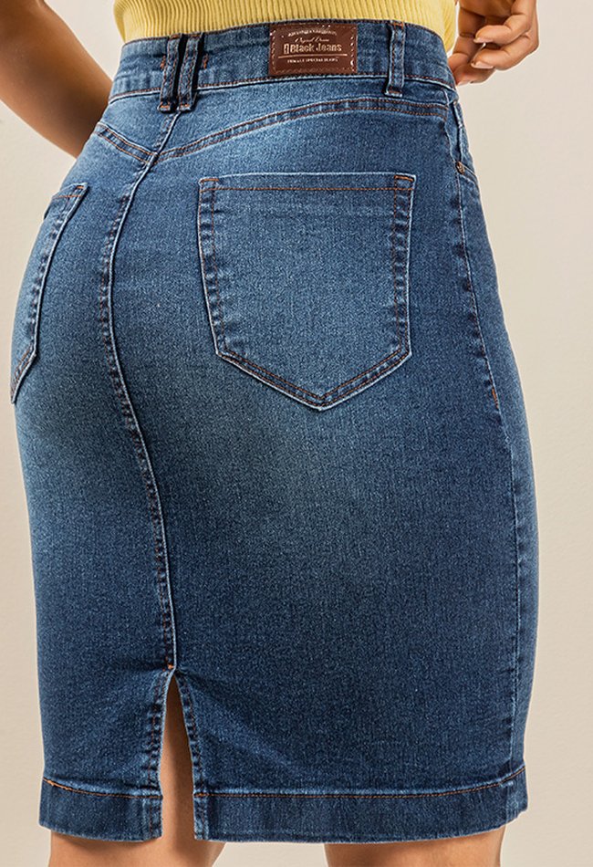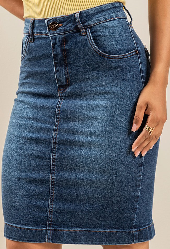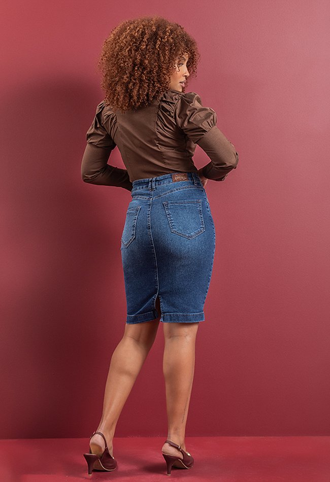 Saia Secretária Denim Escuro