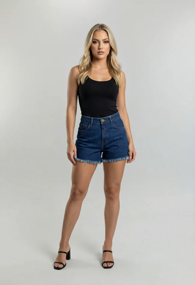 O Shorts Feminino Curto Com Barra Desfiada é uma peça versátil e cheia de estilo para compor looks modernos e despojados. Confeccionado em jeans, ele oferece conforto e ótimo caimento, sendo ideal para o dia a dia, passeios e produções de verão. A barra desfiada traz um toque atual e fashion, deixando o visual mais autêntico e casual.