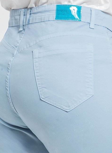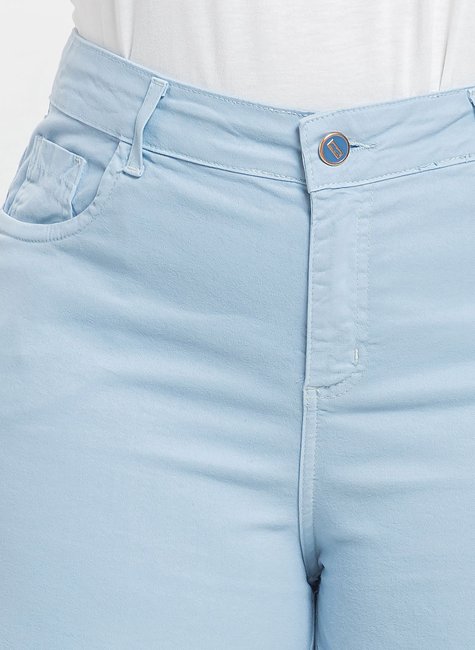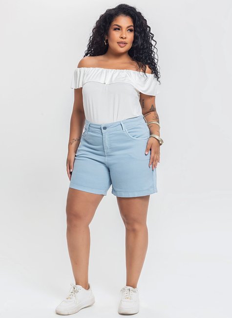 Shorts feminino meia coxa na cor azul bebê, com modelagem moderna e caimento confortável. Peça leve e versátil, perfeita para compor looks casuais e cheios de estilo nos dias mais quentes.